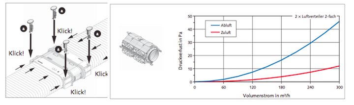 Mit zwei Rohrformen (rund, quadratisch) erreichen Sie jeden Raum. Weil alles ineinander passt, nimmt die Logistik nur wenig Platz ein. Dabei können Sie die Luftzirkulation mit Drosselelementen auf einfache Art justieren.