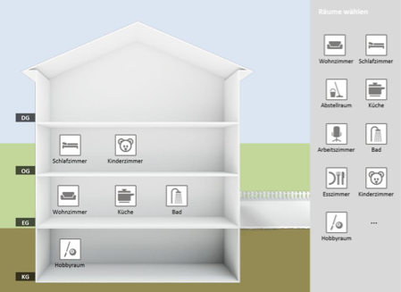 Es ergeben sich selbst organisierende Wohnungen, in denen der Kleiderschrank und Waschmaschine miteinander kommunizieren und Betten, die ideale Traumphasen abwarten, bevor der Wecker klingelt, die Vorhänge öffnen und die Kaffeemaschine zum Blubbern bringt - die intelligente Kommunikation aller Geräte untereinander in Echtzeit. Optimal belüftet dank WAC™ Technologie. In dem Schritt ‚Objektplanung‘ werden zunächst die Räume im Gebäude definiert. Hierzu werden dem Benutzer ein Haus mit den Geschossen sowie eine Palette mit Raumtypen angezeigt. Der Benutzer definiert die Räume in seinem Gebäude, indem er einen Raumtyp aus der Palette per Drag&Drop auf ein Geschoss des Hauses zieht. Sind die Räume auf das Gebäude verteilt, können die einzelnen Räume im nächsten Schritt detaillierter festgelegt werden. Java und JavaFX ermöglichen die plattformunabhängige Ausführung der Anwendung. Für die Planung und Auslegung der Lüftungsanlage ist die Größe der Räume entscheidend. Für weitere Anwendungen (Ausstattung, 3D-Visualisierung, VR/AR, etc.) ist auch die Form wichtig. Aus diesem Grund wird im nächsten Schritt sowohl die Form als auch die Größe eines Raumes definiert. Hierbei kann der Benutzer aus einer Palette vordefinierte Raumformen wählen und diese anschließend anpassen. Ebenso kann er den Raum aber auch komplett neu zeichnen. Die Raumgröße wird aus der Skizze errechnet. Wir nehmen Ihnen die Planungsarbeit ab! Statt sich mit neuer Software auf dem eigenen Computer ärgern zu müssen, geben Sie Ihre Planungs-Vorgaben gleich auf unserem Online-Assistenten mühelos selbst ein. Wir senden Ihnen Ihre individuelle WAC™ Lösung automatisch per Mail zurück - mit Stückliste und Bruttopreisen. Optional kann der Benutzer in jedem Raum Fenster und Türen einzeichnen. ETIM Klassifikation (download)